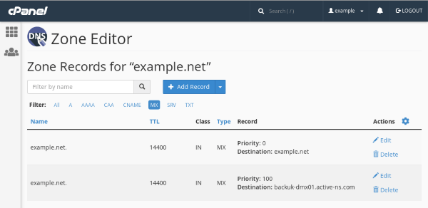 With the Zone Editor interface you can create, edit, and delete DNS Domain Name System Zones record